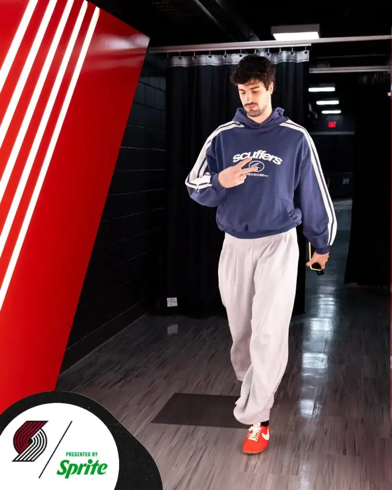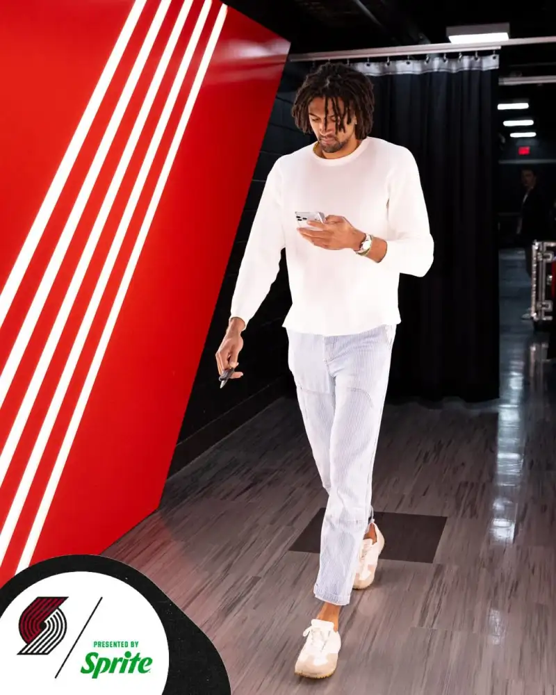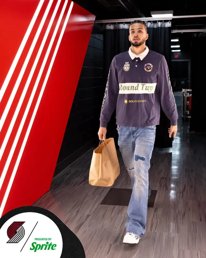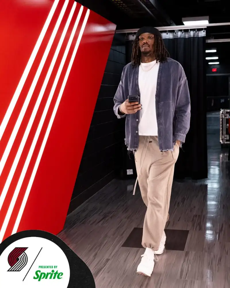 开拓者社媒晒出球员们的入场穿搭照与球迷分享。