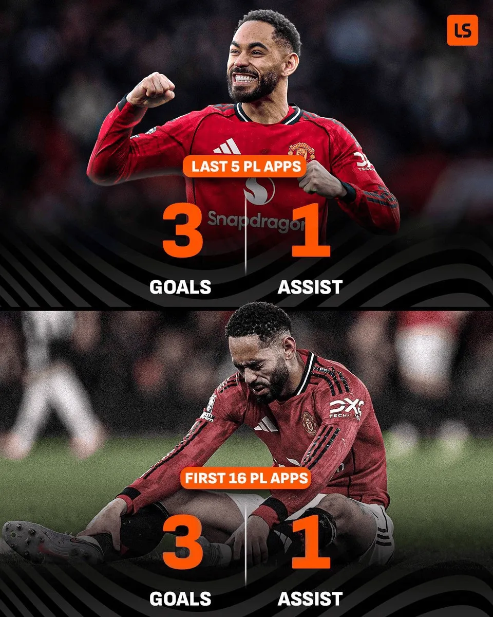 虎扑02月06日讯 根据LiveScore的统计,库尼亚在最近5场英超联赛里贡献了3球1助,这个参与进球数与他代表曼联出战的前16场英超联赛相同。