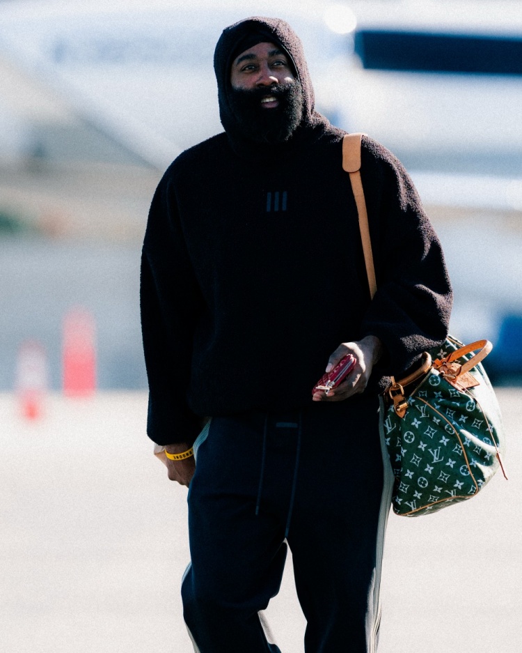 三连客挑战爵士掘金太阳!快船众将登机照 哈登微笑&小卡看手机